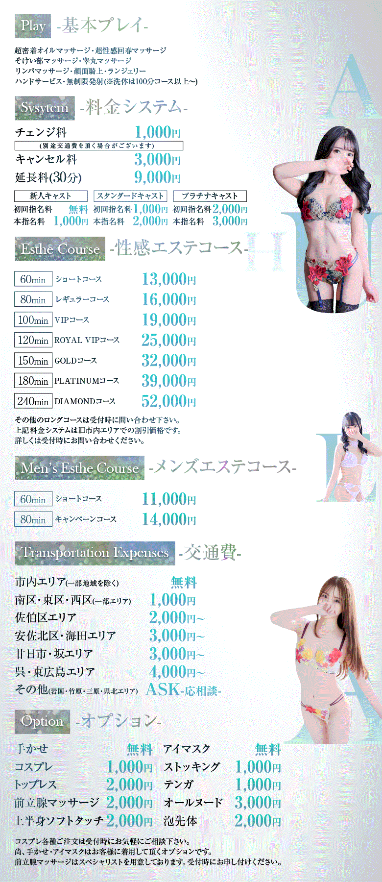 ※ご指名の場合、別途指名料が発生します。