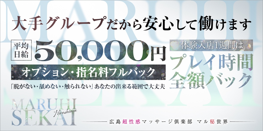| 店舗名 | 広島超性感マッサージ倶楽部 マル秘 世界(RUSH ラッシュグループ) |