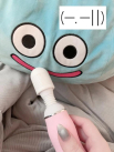 だっこして寝てるたまに枕になるらぶなスライムぬいぐるみに愛用デンマを食べてもらいましたおしゃぶりです多分困って嫌な顔してるかもしれ…
