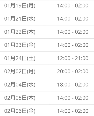 直近の予定!2月半ばまでは
