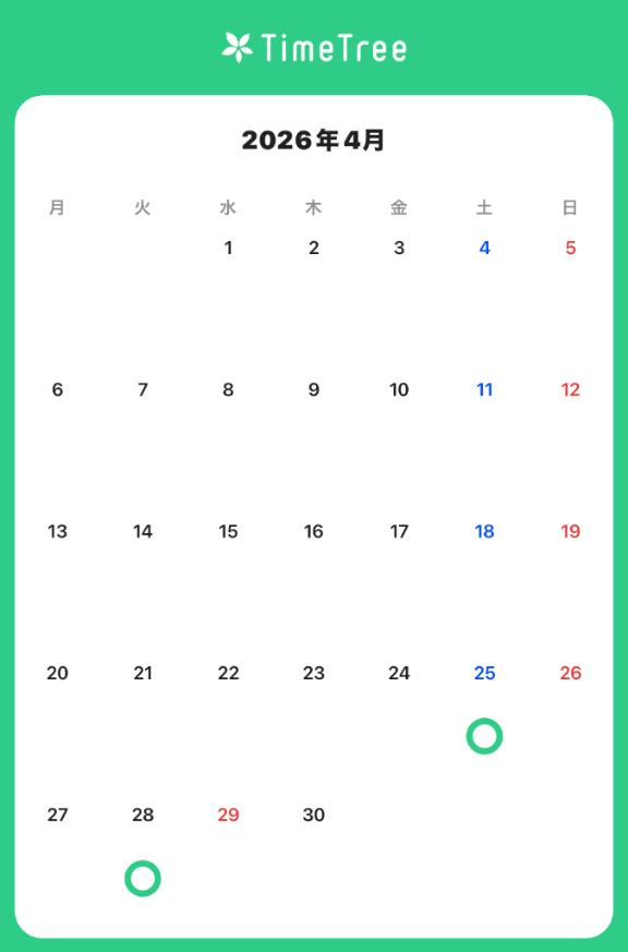 今月出勤のご案内です。