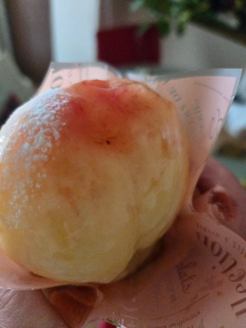 桃の中身はクリームたっぷりケーキ♪