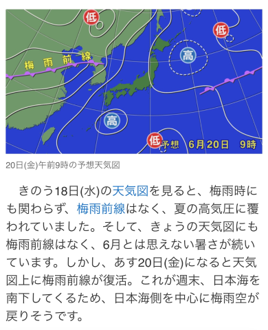 この前梅雨前線が消滅?行方不明になったってやってるのみて、