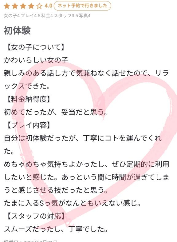 お兄様の貴重な時間を割いて素敵なクチコミを