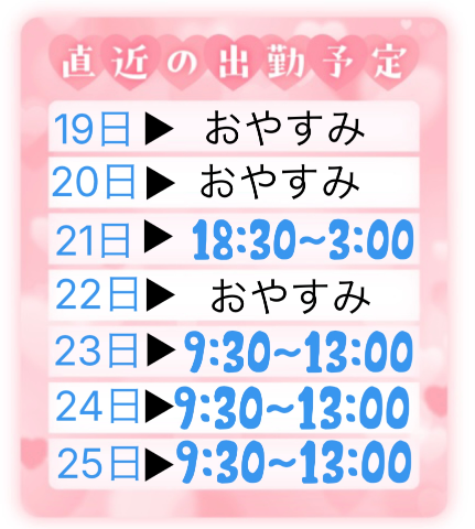 また、出勤予定のお知らせ投稿するので