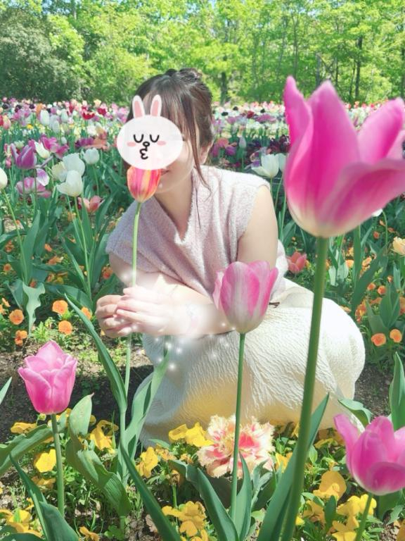 今日から広島に来ています?この春に撮ったお花畑での1枚だけど