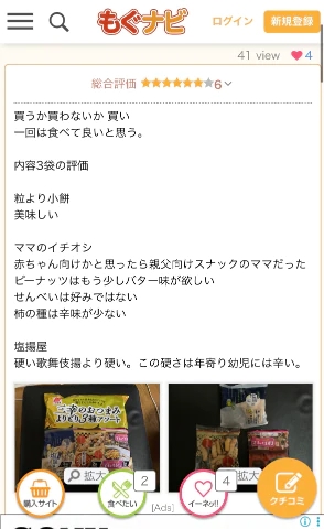 マグナビの口コミママのイチオシおつまみスナックを赤ちゃん向けかと思ったらオヤジ向けスナックのママだった高いとあり笑ってしまいました!私も赤ちゃん向けのお菓子かと思いました。