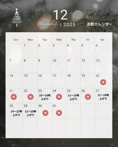 【年末期間】明日から3日連続出勤します