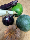 自家製の無肥料無農薬のお野菜、ナスにかぼちゃに冬瓜に小玉スイカ