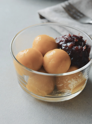 かぼちゃで色づけしたお団子もちろんつぶあんも!