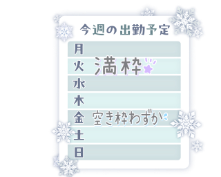 今週の出勤予定、お店に出させてもらいました。