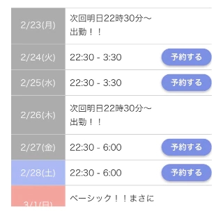今日も22時半~6時で出勤