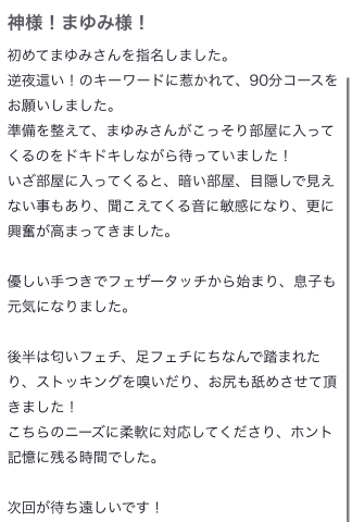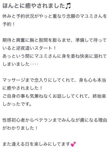 MAYUMIさんを求めてさまよっていたお客様。 当店でMAYUMIさんに逢えるようになりました。