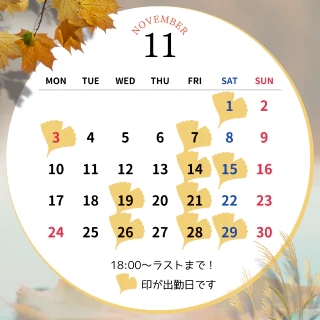 次回出勤は11/28(金)18:00〜!