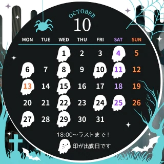 10月の出勤予定の再掲です〜!