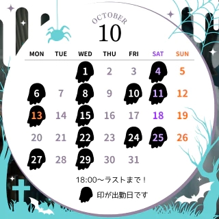 次回出勤は10/4(土)18:00〜!