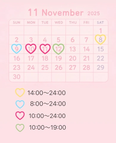 11/8〜11/12の5日間出勤します✊✨