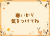 寒さが厳しくなっております。お体にお気をつけて!