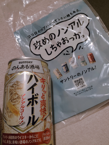 街中でサントリーさんがノンアルのハイボールを無料配布してたの、もらっち?(*´∀`艸)*゚。