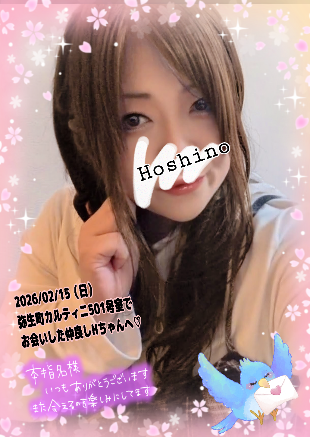 2026/02/15(日)弥生町カルティニ501号室でお会いした仲良しHちゃんへ?(*^^*)2026/02/15(日)