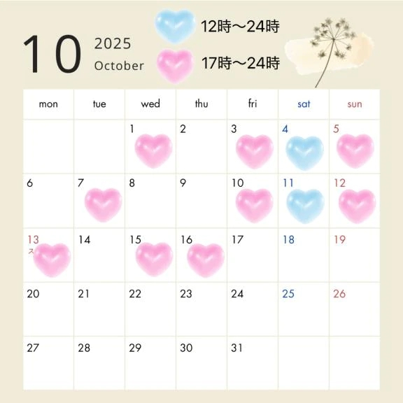 10月も皆様とお会いできるのを楽しみにしております❤️