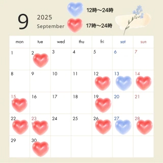 明日明日9/22(月)17時〜ラストまで出勤です❤️