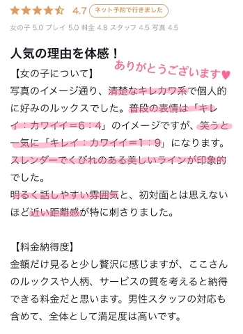 全てにおいて素晴らしい❤️【お礼写メ日記】とっても素敵な口コミをありがとうございます