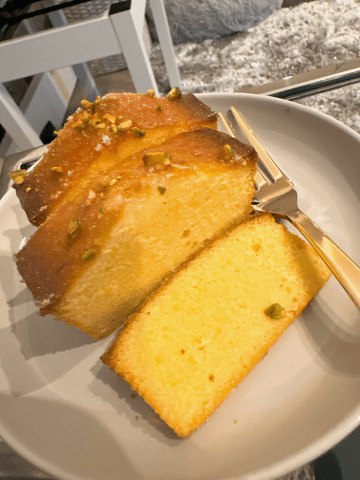 レモン果汁の半分は生地に混ぜ、もう半分は上にかかってるグラス・オ・シトロンとゆーグラサージュに混ぜております✨