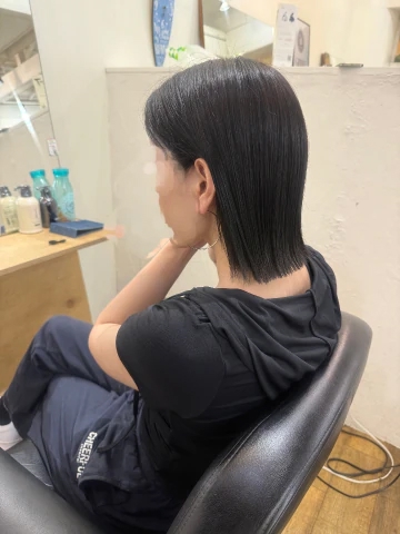 基本なみねはハンサムショートが多いので、1番短いところは耳の真ん中辺り。
