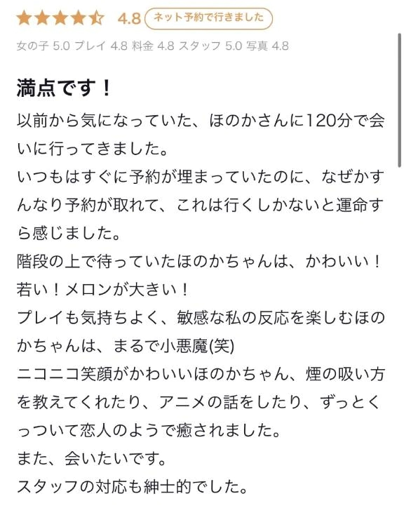 前から気になってて、タイミングよく120分で会いに来てくれてありがとうそれを「運命」って思ってくれたの、ほのか的にめちゃくちゃ嬉しい…
