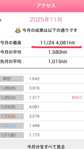 最近、一日のアクセス数が高いの!ひめちゃんめっちゃ嬉しすぎてこれからももっとお兄様たちに振り向いて欲しいの🥺💕