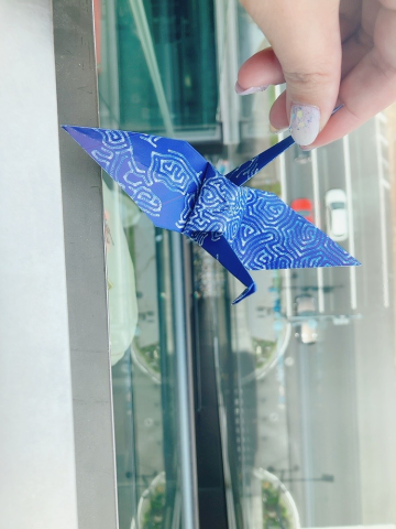【おりづるタワー】行った時の?´-?折鶴をココから落とします??下見ると車がちっちゃい〜????高いの苦手な人はちょっと怖いかも??