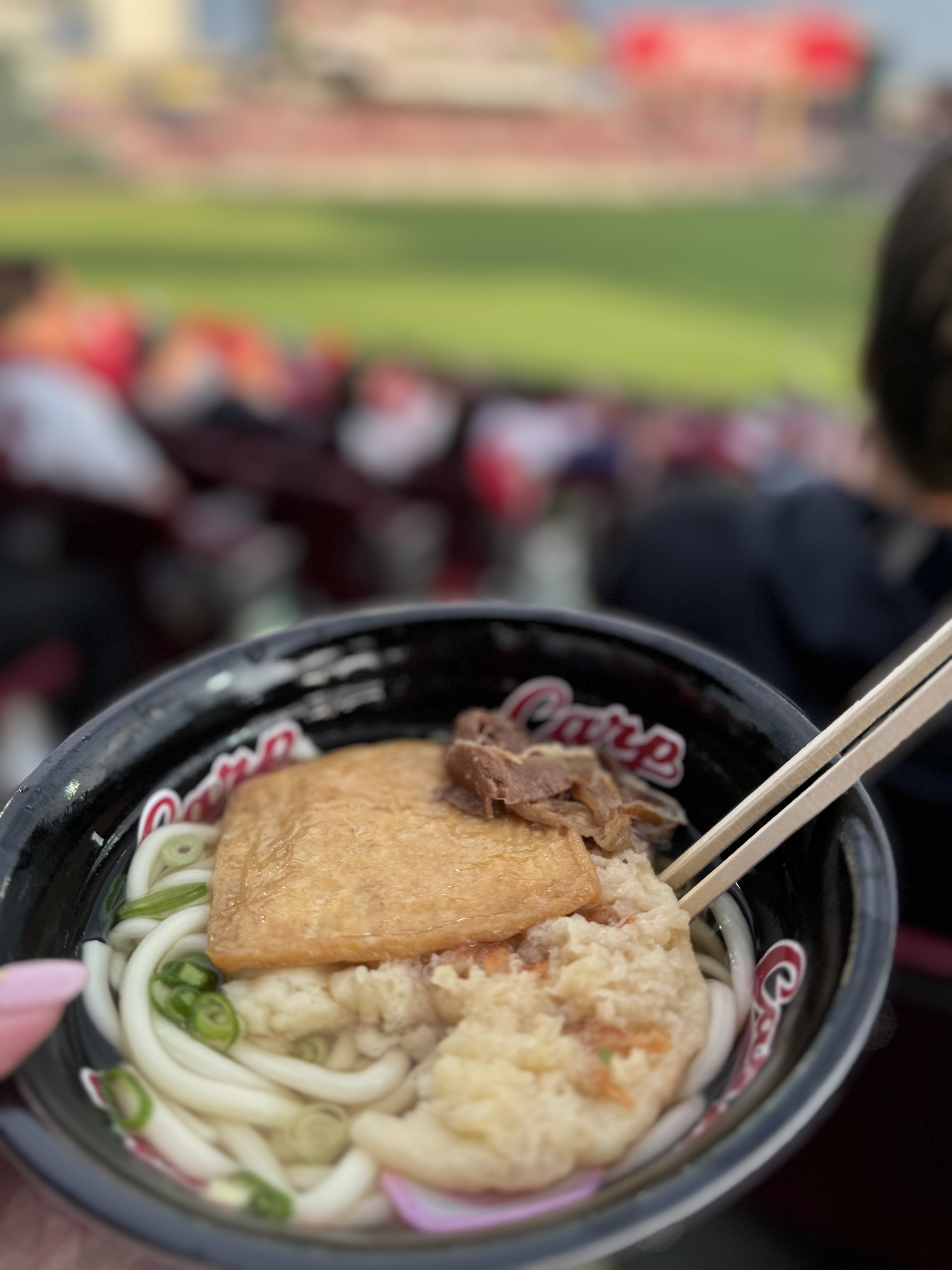 出勤しました♥️写真は【カープうどん】です😊スタジアム行くといつもお出汁のいい匂いがするんだよね笑22時までお誘い待ってますね⟡.·*.愛花。