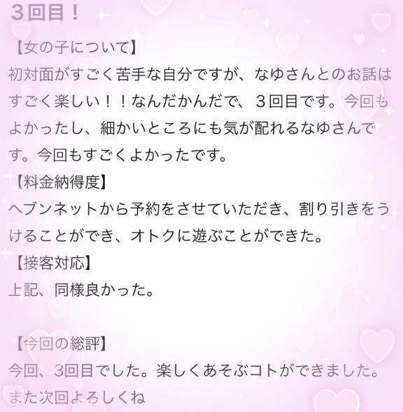 今回もなゆの口コミを書いて頂きありがとうございます☺️