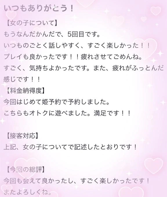 なゆの口コミを書いて頂きありがとうございます✨