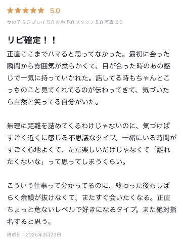 初めて言われた(⑉・ ・⑉)初めましてで口コミありがとう❣️プロ意識高いって初めて言われたから何だか照れちゃうし嬉しいな( *´꒳`* )