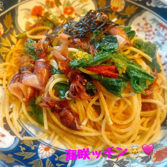海咲ッチン👩🍳🩷ホタルイカと菜の花のからすみペペロンチーノ👩🍳🩷