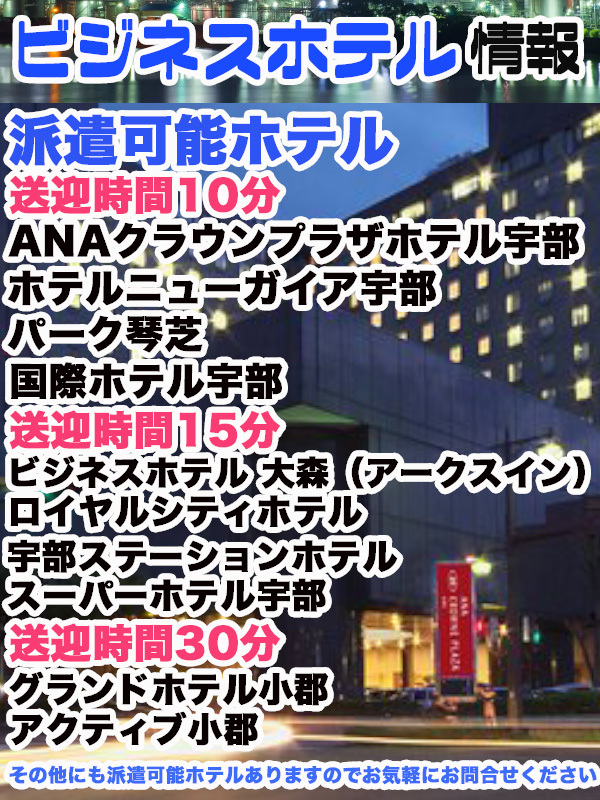 宇部市(ヨーロッパ近く)・小郡(USA近く)・湯田温泉 に待機場所を設けております。