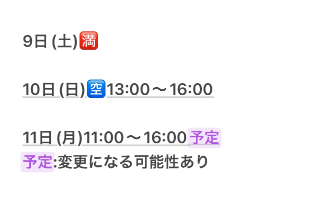 ▶︎おやすみ前までの空き枠ご案内
