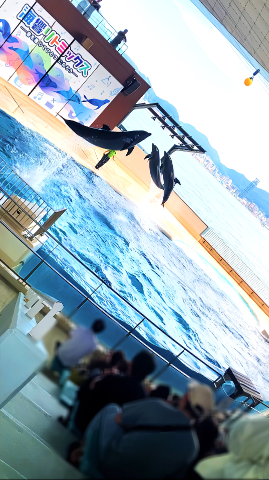 入館してすぐにタイミングよくイルカのショーを観れることになって、