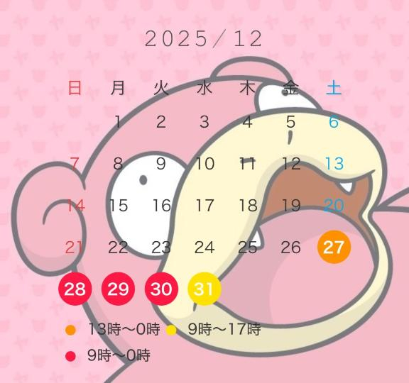 次回の出勤は27日からです(???????)?