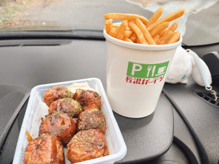 長沢ガーデンのたこ焼きやポテト食べて…