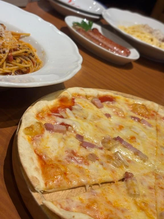 パスタと、ポテトと、ピザ食べました笑