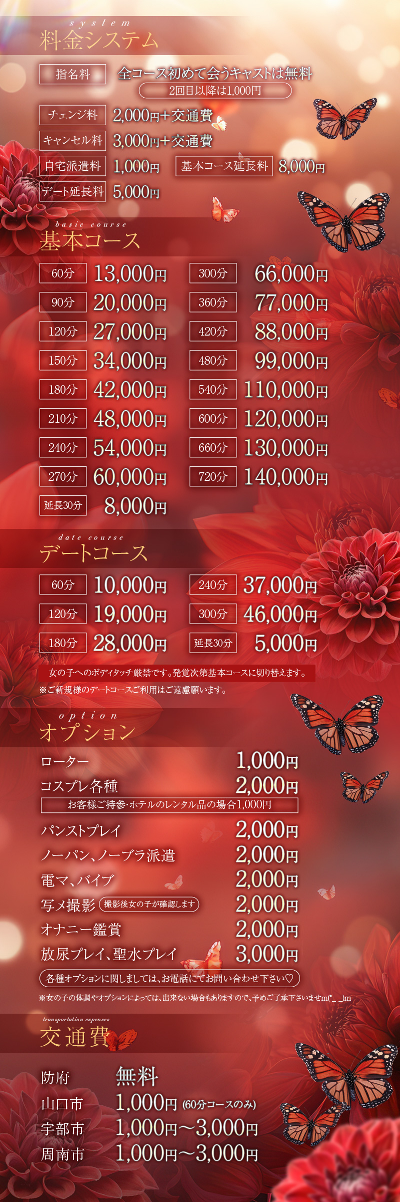 山口市¥ 1,000(60分コースのみ)