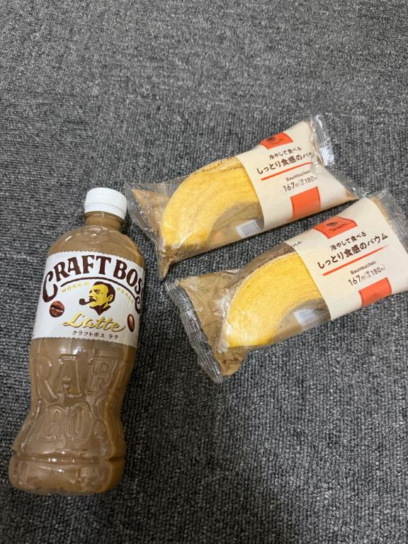 差し入れのカフェラテとバームクーヘンありがとでしたっ