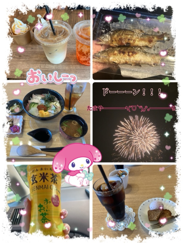 💕その後は花火まで時間があったので、ぶら〜っと車を走らせ用を終わらせて戻り、車で待機🚗³₃鮎の塩焼きも美味しかったね🫶🏻食べてばっかり
