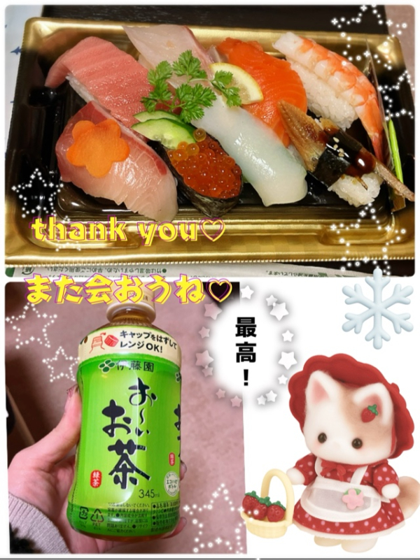 帰りに言ってたけど、美味しかったととても喜んでました(ㅅ ॑꒳ ॑*)感謝♡私は一緒に居るときに食べたけど、美味しくて♡満たされました♡遅い時間でもあってよかったよね🥰遅くなったけど、時間を合わせてくれて助かりました🙏🏻🎵年内タイミングが合えばまた会えるかもって言ってたから期待して待ってるね🤭💖年内もう一度会えたら嬉しいな