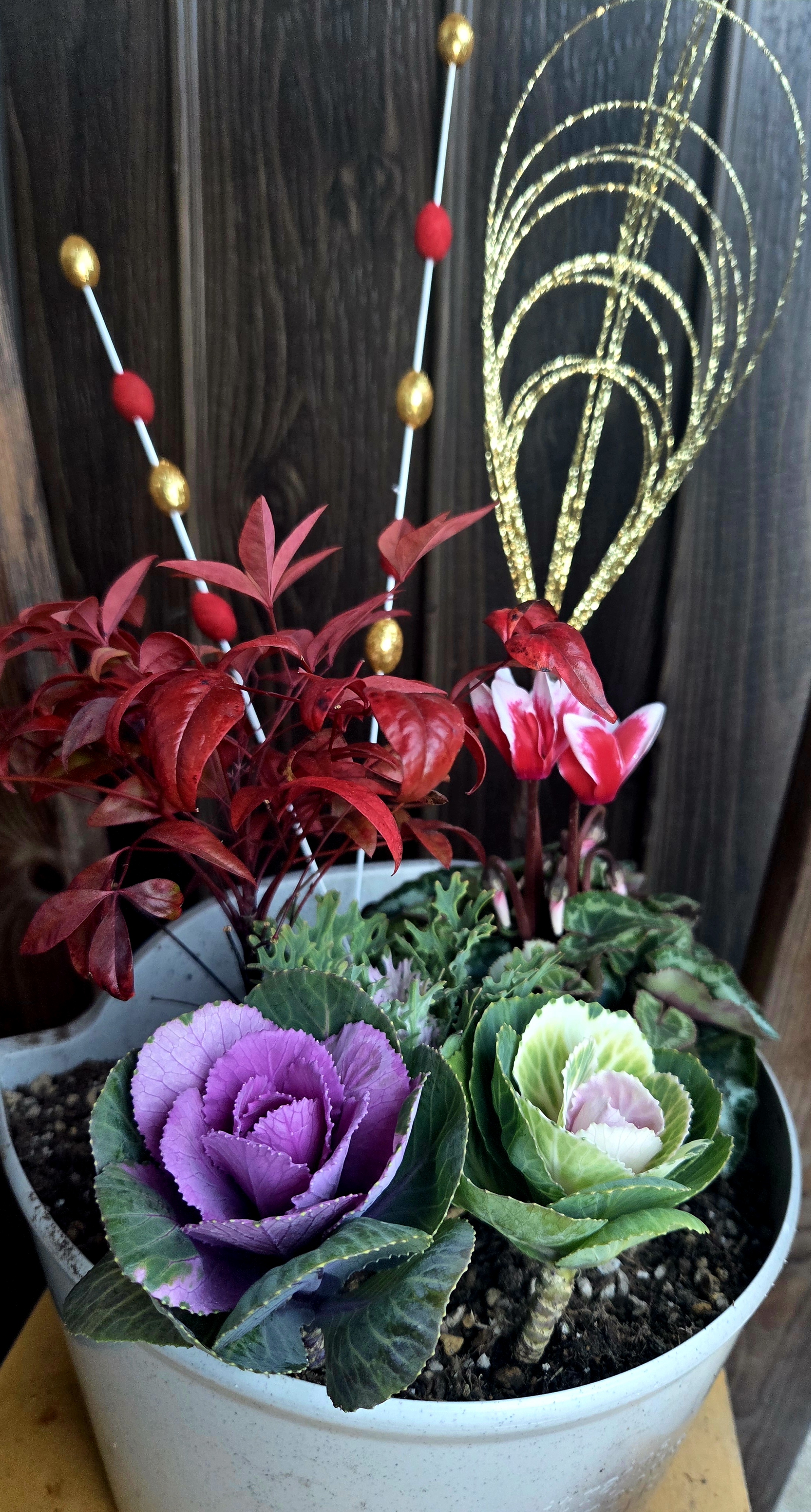 昨日、クリスマス&お正月様に!!寄せ植えしました🍀寒い中ちゃんと成長してくれたら良いな -